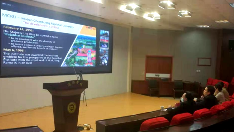 為助力我校及毗鄰地區(qū)學(xué)子在境外知名大學(xué)繼續(xù)提升學(xué)歷水平的迫切需求,進一步擴大繼續(xù)教育學(xué)院與國際知名大學(xué)合作的深度。3月29日,我校與泰國國立莊棚皇家大學(xué)召開視頻會議,就聯(lián)合培養(yǎng)碩士等合作項目進行了交流。國際合作與交流處處長張建芳、繼續(xù)教育學(xué)院院長樊景博及相關(guān)工作人員參加了會議。
