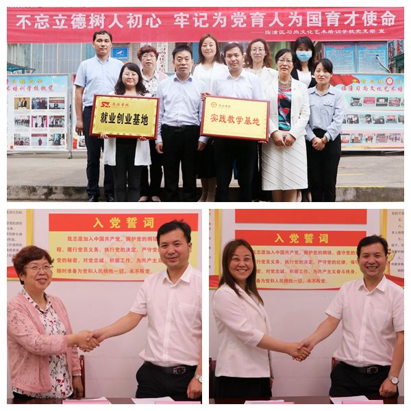 劉麥霞、魯綿茸分別代表學(xué)校與合作單位簽訂了創(chuàng)業(yè)就業(yè)基地協(xié)議和教育實(shí)習(xí)基地協(xié)議。