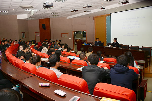 在講座中,孫志發(fā)介紹了奧塔哥大學(xué)的基本情況,并就新西蘭大學(xué)與中國(guó)大學(xué)的不同之處進(jìn)行了對(duì)比。他指出,新西蘭的學(xué)位體系中,本科教育只需3年便可獲得學(xué)位,獲得優(yōu)等學(xué)位的學(xué)生可以直接參加工作,獲得一等優(yōu)等學(xué)位的學(xué)生,可再讀一年直接攻讀博士學(xué)位,拿到優(yōu)秀獎(jiǎng)學(xué)金;沒(méi)有考上大學(xué)的學(xué)生可以在21歲時(shí)進(jìn)入一些大學(xué)的普通專(zhuān)業(yè),在期末后達(dá)到相應(yīng)學(xué)分即可獲得學(xué)位;國(guó)外留學(xué)生若要進(jìn)入新西蘭境內(nèi)的大學(xué)繼續(xù)學(xué)習(xí)深造,則需要有專(zhuān)業(yè)人士較為權(quán)威的推薦信、優(yōu)異的成績(jī),以及在正規(guī)刊物上發(fā)表的文章或論文;新西蘭沒(méi)有專(zhuān)門(mén)的師范大學(xué),若要從事教師行業(yè),須到教育學(xué)院學(xué)習(xí)一年即可。