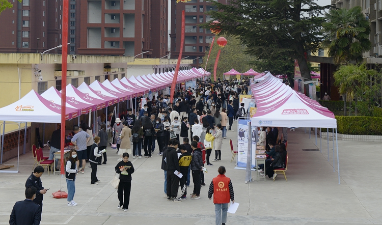為更好地拓寬畢業(yè)生就業(yè)渠道,確保2021屆畢業(yè)生充分就業(yè)、穩(wěn)定就業(yè),4月10日,由陜西省教育廳主辦,商洛市人力資源和社會保障局、商洛市人才交流服務(wù)中心協(xié)辦,我校承辦的2021屆畢業(yè)生春季綜合類校園招聘會順利舉辦。校黨委副書記彭虎軍、商洛市人力資源和社會保障局及人才交流服務(wù)中心相關(guān)負責(zé)人深入招聘會現(xiàn)場指導(dǎo)工作。我校相關(guān)職能部門負責(zé)人,各二級學(xué)院黨總支書記、學(xué)工辦主任及畢業(yè)班輔導(dǎo)員全程參與并為畢業(yè)生提供就業(yè)指導(dǎo)服務(wù)。