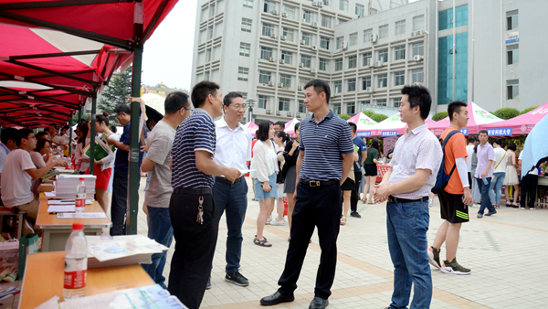 劉勇和考生及家長進行了親切交談,看望慰問了參加咨詢會的各高校工作人員,仔細詢問了招生咨詢情況,并囑咐教務處工作人員和學生志愿者做好服務工作。我校國際合作交流處及各二級學院教師現(xiàn)場耐心解答了家長和考生們關(guān)心的我校2018年招生政策、招生計劃、專業(yè)特色、考研就業(yè)和學生國際交流等情況。