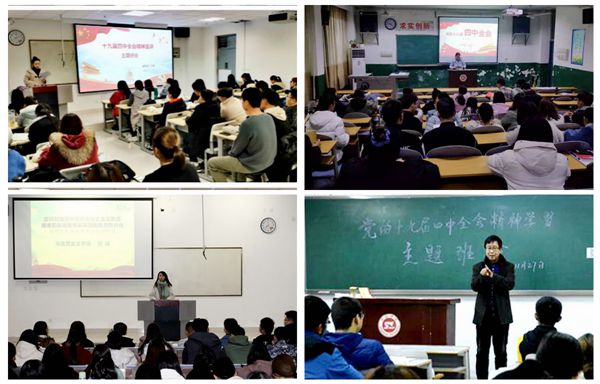 為確保黨的第十九屆四中全會(huì)精神全覆蓋,各學(xué)院針對(duì)外出實(shí)習(xí)學(xué)生,借助微信、qq工作群等網(wǎng)絡(luò)平臺(tái),發(fā)送學(xué)習(xí)內(nèi)容,開展了多種形式的在線學(xué)習(xí)。