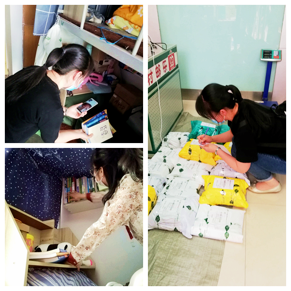 “老師,單位通知我盡快簽約,可我的三方還在宿舍,能不能幫我取一下?”“導(dǎo)員,上學(xué)期高數(shù)(1)好不容易沒(méi)有掛科,現(xiàn)在《高數(shù)(2)》快結(jié)課了,要是再?zèng)]有書(shū),這學(xué)期肯定掛了,能不能幫幫我!”面對(duì)學(xué)生的要求,數(shù)計(jì)學(xué)院學(xué)工人員主動(dòng)變身校園“快遞員”,“云”接單后在學(xué)生宿舍進(jìn)行直播“帶貨”,小到一張紙,大到筆記本電腦都在他們的下單范圍?!澳憧纯词遣皇沁@本書(shū)?英語(yǔ)書(shū)要不要?”“你的柜子鑰匙在哪里?是在床墊靠門的一邊下面壓著嗎?”“你要拿哪幾件衣服?是這件嗎?還有那件,需要嗎?”“宿舍陽(yáng)臺(tái)的幾盆植物是誰(shuí)的呀,已經(jīng)干癟了,我給幫忙澆點(diǎn)水。”找到東西后,輔導(dǎo)員們會(huì)逐一貼上標(biāo)簽仔細(xì)核對(duì),以免物品混淆,到快遞寄送點(diǎn)后也會(huì)一直監(jiān)督物品打包、物流信息填寫(xiě),還會(huì)對(duì)個(gè)別建檔立卡學(xué)生提供包郵服務(wù)。