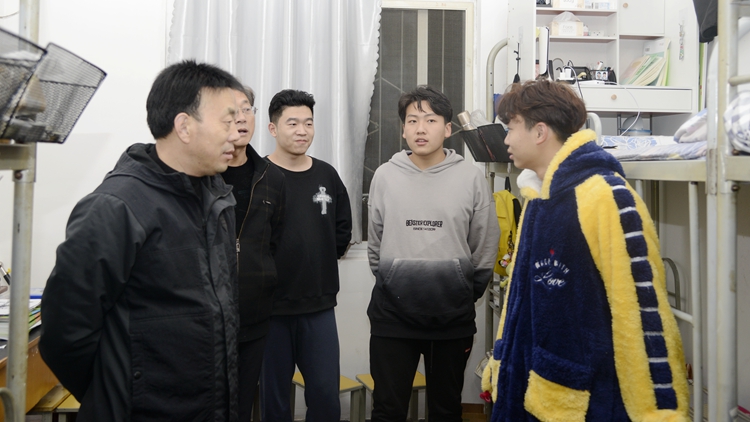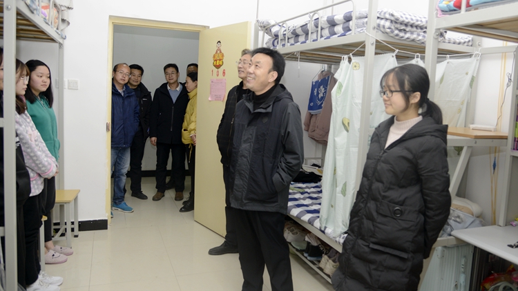 檢查中,彭虎軍詳細(xì)查看了公寓出入學(xué)生登記冊、輔導(dǎo)員進(jìn)樓走訪工作臺賬及輔導(dǎo)員值班安排表,并就公寓管理、宿舍文明、宿舍衛(wèi)生、學(xué)生教育管理等工作與宿管員及值班輔導(dǎo)員進(jìn)行了深入交流。在學(xué)生宿舍,彭虎軍仔細(xì)查看了宿舍環(huán)境、設(shè)施安全及衛(wèi)生情況,與學(xué)生們親切交談,詢問他們學(xué)習(xí)生活中的困難和需求、就業(yè)意向及宿舍供暖情況等,叮囑學(xué)生要提高安全意識,注意冬季用電安全,遵守公寓安全相關(guān)規(guī)定,營造良好的學(xué)習(xí)和生活環(huán)境。彭虎軍還要求相關(guān)部門及二級學(xué)院要進(jìn)一步加強(qiáng)安全隱患排查整治工作,形成常態(tài)化工作機(jī)制,解決好突出問題,充分保障學(xué)校安全穩(wěn)定大局,確保正常的教育教學(xué)秩序。