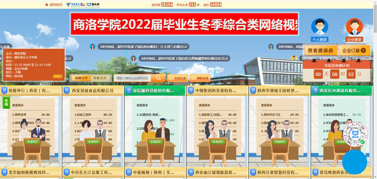 12月15日,我校舉辦2022屆畢業(yè)生冬季綜合類網(wǎng)絡(luò)視頻招聘會(第二場)。省內(nèi)外250多家用人單位參加,提供涉及IT通信、教育科技、醫(yī)療衛(wèi)生、建筑工程、信息服務(wù)、機(jī)電制造等9大行業(yè)領(lǐng)域的就業(yè)崗位2萬余個(gè),吸引了近2000余名校內(nèi)外畢業(yè)生參會,累計(jì)投遞簡歷1887份。其中,我校入場求職學(xué)生421人,初步達(dá)成就業(yè)意向598人次。