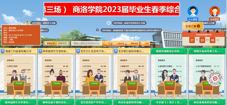 為切實(shí)做好我校2023屆畢業(yè)生就業(yè)工作,促進(jìn)畢業(yè)生更加充分、更高質(zhì)量就業(yè),4月19日,由省教育廳主辦,商洛市人社局、商洛市人才中心協(xié)辦,我校依托貓頭英云人才市場成功舉辦了2023屆畢業(yè)生春季綜合類網(wǎng)絡(luò)視頻招聘會(第二場)。