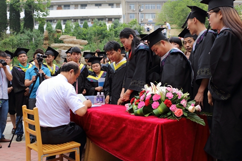 在莘子苑入口,畢業(yè)生排隊(duì)熱烈歡迎劉建林校長。劉建林現(xiàn)場向畢業(yè)生贈(zèng)送了自己編著的《跨流域調(diào)水工程補(bǔ)償機(jī)制研究——以南水北調(diào)(中線)工程商洛水源為例》一書,并在書上題寫了“膽大心細(xì),精打細(xì)算”的贈(zèng)語及簽名。簽名贈(zèng)書現(xiàn)場人頭攢動(dòng),畢業(yè)生們圍繞在劉建林身邊,爭先恐后領(lǐng)取贈(zèng)書。拿到劉校長親筆簽名的書籍,同學(xué)們臉上流露出了激動(dòng)和幸福的表情。