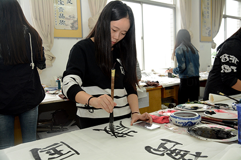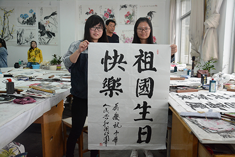 學生胡甜甜說道,書法是中國傳統(tǒng)文化的瑰寶,在祖國67華誕即將到來之際,用書法作品表達對祖國的愛,覺得很有意義,也深受教育。學生許佳妮說,作為當代大學生,我們要認真學習,練就報效祖國的本領,為實現(xiàn)中國夢做出自己的貢獻!祝祖國繁榮昌盛,美麗富強!