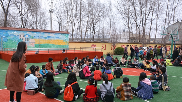 ——關(guān)愛(ài)留守兒童,呵護(hù)祖國(guó)花朵。“哥哥姐姐們,我最喜歡你們來(lái)看我們了?!睆堒W(xué)的一名學(xué)生在看到志愿者后激動(dòng)地說(shuō)。3月10日,文傳學(xué)院志愿者們?cè)趫F(tuán)總支的帶領(lǐng)下來(lái)到張塬小學(xué),為這里的留守兒童送去學(xué)習(xí)用具,帶來(lái)關(guān)愛(ài)和呵護(hù)。了解了孩子們的學(xué)習(xí)生活情況后,志愿者們帶領(lǐng)小朋友跳繩、丟手帕、捉迷藏、唱歌,和孩子們共度了一段樂(lè)趣橫生的美好時(shí)光,給校園增添了歡聲笑語(yǔ)。