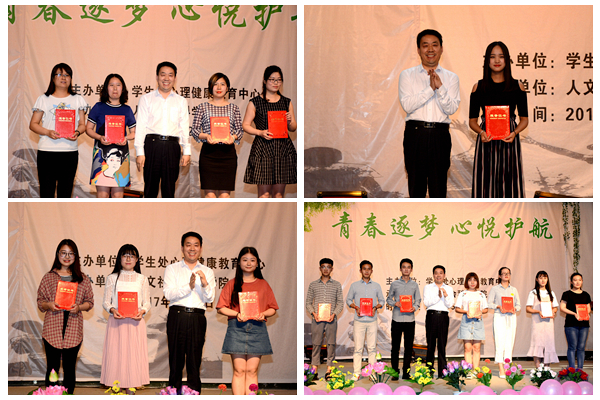5月24日下午,以“青春逐夢 心悅護(hù)航”為主題的首屆校園心理情景劇大賽在我校大學(xué)生活動(dòng)中心舉行。本次活動(dòng)由學(xué)生處心理健康教育中心主辦、人文社會(huì)科學(xué)學(xué)院承辦。校黨委副書記彭虎軍出席本次活動(dòng),與各二級(jí)學(xué)院黨總支書記、全體輔導(dǎo)員、學(xué)生代表共同觀看了比賽。大賽由學(xué)生處處長石啟英主持。