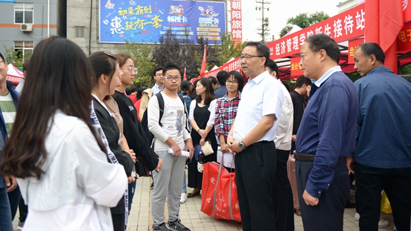 龍治剛、范新會(huì)、彭虎軍、劉勇分別深入交費(fèi)處、綠色通道、行李寄存處、臥具發(fā)放處、軍訓(xùn)服裝發(fā)放處、銀行卡與通信卡辦理處和各二級(jí)學(xué)院新生報(bào)到接待處等場(chǎng)點(diǎn),巡查迎新工作開(kāi)展情況,走訪慰問(wèn)工作人員和學(xué)生志愿者,與新生家長(zhǎng)交談。