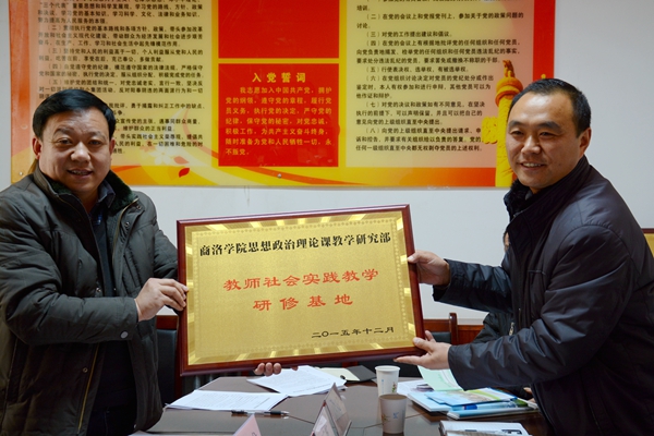 為了認(rèn)真貫徹落實《商洛學(xué)院關(guān)于印發(fā)<商洛學(xué)院根植地方行動計劃實施辦法(試行)>》文件精神,切實實現(xiàn)教師進政府、進社區(qū)、進鄉(xiāng)村,不斷提高我校思政課教師深入基層、服務(wù)地方的能力,2016年1月6日,思想政治理論課教學(xué)研究部組織部分教師前往洛南縣陜南移民安置工作辦公室、洛南縣四皓中學(xué),舉行教師實踐研修基地掛牌儀式,積極開展校地合作。
