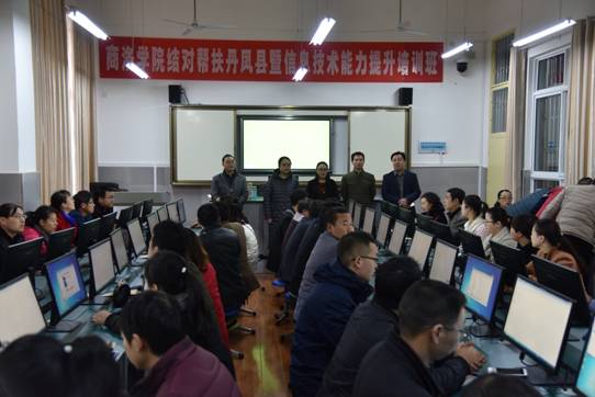 為深入學(xué)習(xí)貫徹黨的十九大精神,加大教育扶貧力度,積極推進“雙百工程”,我校結(jié)對幫扶丹鳳縣暨中小學(xué)教師信息技術(shù)能力提升培訓(xùn)班于11月18日在丹鳳縣思源實驗學(xué)校開班,來自丹鳳縣中小學(xué)的50名信息技術(shù)骨干教師參加了為期一天的培訓(xùn)活動。本次培訓(xùn)由我校扶貧工作領(lǐng)導(dǎo)小組整體安排,繼續(xù)教育學(xué)院組織實施,精選校內(nèi)信息技術(shù)專業(yè)骨干教師組成培訓(xùn)團隊,精準提升丹鳳縣中小學(xué)教師信息技術(shù)應(yīng)用能力。