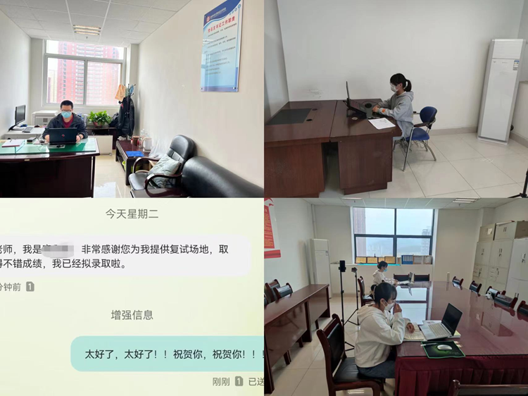 領(lǐng)導重視,精心服務(wù)。疫情防控背景下,學院考慮到線上參加考研復試的學生居多,黨總支書記親自部署安排,將學院會議室、黨員活動室、部分教研室和辦公室作為學生考研專用復試場地,升級復試場所網(wǎng)絡(luò),幫助提供筆記本、耳機等線上復試設(shè)備,協(xié)助學生調(diào)試網(wǎng)絡(luò)和設(shè)備,傾力為學生排憂解難,全方位為學生考研復試保駕護航。