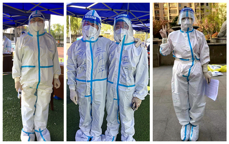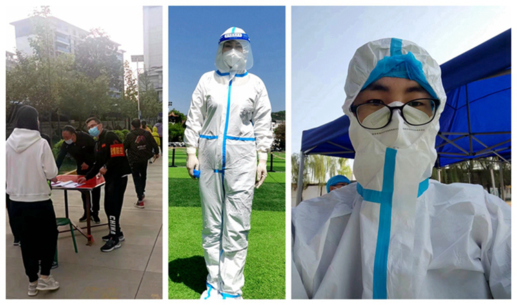 ——廣大教師響應(yīng)號(hào)召,積極參與志愿服務(wù)。4月8日首場(chǎng)全員核酸檢測(cè)拉開(kāi)序幕,工作人員緊缺,馬克思主義學(xué)院教師安梅、王偉萍、王貝貝主動(dòng)請(qǐng)纓,穿上防護(hù)服,變身“大白”,在炎炎烈日下協(xié)助醫(yī)護(hù)人員完成檢測(cè)任務(wù)。4月11日,組織部發(fā)出《致全校各級(jí)黨組織和廣大共產(chǎn)黨員的倡議書(shū)》后,馬克思主義學(xué)院教師黨員積極響應(yīng),踴躍報(bào)名。劉健、葉肖、鞏麗麗、王貝貝、王偉萍等同志參與了校內(nèi)志愿服務(wù),高婷婷、宋秀方等同志積極擔(dān)任了所在小區(qū)志愿者。他們起早貪黑,頂著烈日、冒著風(fēng)雨為疫情防控做出積極貢獻(xiàn)。還有肖歲利等非黨員教師也積極向組織表達(dá)了參加志愿服務(wù)的強(qiáng)烈愿望。