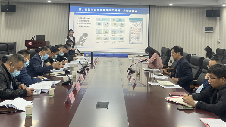 副院長曹寶月對化材院期中教學(xué)自查情況作了專題匯報,匯報結(jié)束后陪同檢查組分兩路開展了期中教學(xué)過程材料和教學(xué)、科研實驗室運行管理的檢查。
