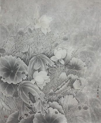 葛穎《荷韻撫風(fēng)》國畫