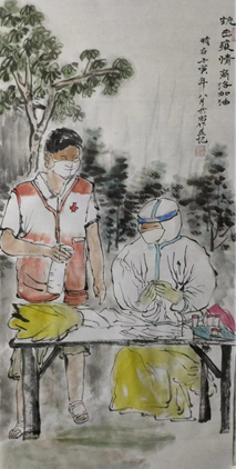活動開展以來,先后收到了一批國畫、書法、油畫、水彩、漫畫、設(shè)計等各類作品。師生們有的用畫筆為戰(zhàn)斗在疫控一線的無名英雄畫像,謳歌戰(zhàn)斗在疫區(qū)一線的抗疫者,為即將到來的勝利吹響沖鋒的號角;有的弘揚(yáng)偉大抗疫精神,圍繞樹立信心、謳歌抗疫精神、倡導(dǎo)防疫風(fēng)尚主題創(chuàng)作美術(shù)作品。