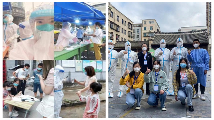 面對(duì)暑期各地疫情突發(fā)狀況,人文學(xué)院學(xué)子第一時(shí)間響應(yīng)當(dāng)?shù)卣?hào)召,變身“白墩墩”“紅融融”,協(xié)助醫(yī)護(hù)人員設(shè)置檢測(cè)場(chǎng)地、維持采樣秩序、進(jìn)行掃碼登記、發(fā)放核酸貼紙,確保核酸檢測(cè)工作有序進(jìn)行,為當(dāng)?shù)匾咔榉揽毓ぷ髫暙I(xiàn)青春力量,展現(xiàn)青年責(zé)任擔(dān)當(dāng)。