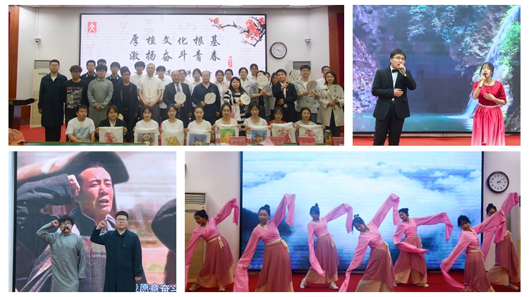 本期道德講堂共分為“唱首歌”“賞舞蹈”“誦經(jīng)典”“悟文化”“感青春”“做承諾”“送吉祥”七個板塊。歌曲《秦嶺最美是商洛》展現(xiàn)了商洛地區(qū)的山水之美與人文之美,讓人在美好的藝術享受過程中不由自主地愛上商洛。靈動唯美的《水袖舞》充分展現(xiàn)了商洛文化的魅力與活力。在“誦經(jīng)典”環(huán)節(jié)中,同學們聲情并茂地誦讀了中華經(jīng)典詩文《滕王閣序》,傳遞了當代青年對傳統(tǒng)文化的敬意與守護傳承的決心?!拔蛭幕焙汀案星啻骸杯h(huán)節(jié)通過視頻《厚植文化根基 激揚奮斗青春》和話劇《李大釗》引導同學們深入思考文化的內涵與青春的意義,激發(fā)青年學生在新時代背景下的責任感和使命感。在“做承諾”環(huán)節(jié)中,同學們一致承諾要堅持良、善、美的價值觀,秉承和諧、儒雅、自強、卓越的人文精神,明理曉情,勵志篤行,在中華大地的廣闊沃土上,傳承優(yōu)秀傳統(tǒng)文化,攜手共創(chuàng)未來芳華!