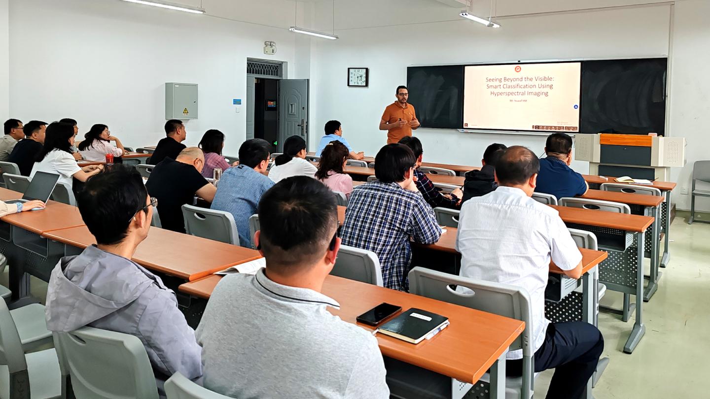 5月14日下午,北京航空航天大學在讀博士Youcef HM受邀來我校開展題為“Seeing Beyond the Visible:Smart Classification Using Hyperspectral Imaging”的學術報告,電信學院全體教師參加。