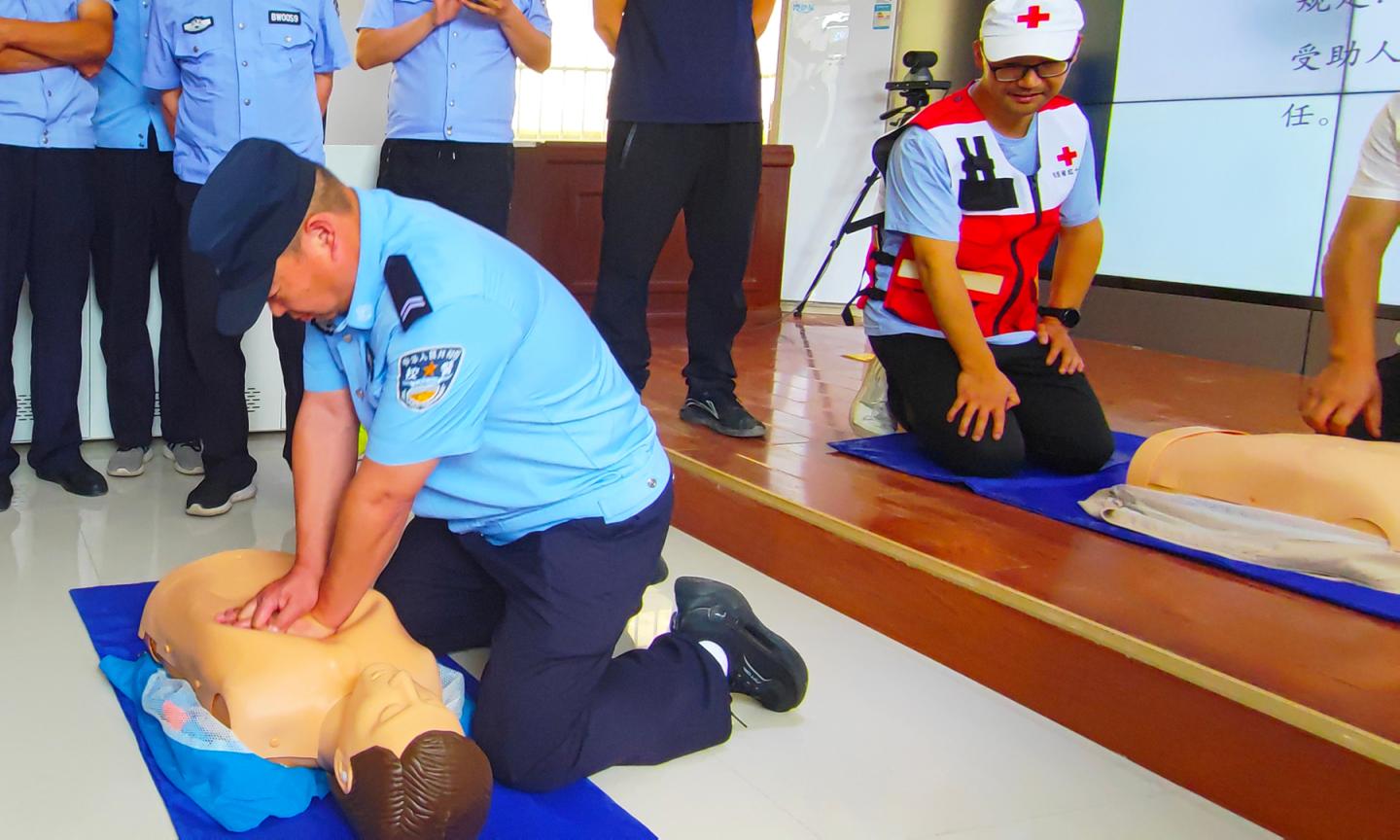 6月10日,我校保衛(wèi)處聯(lián)合市紅十字會(huì)開(kāi)展心肺復(fù)蘇(CPR)與自動(dòng)體外除顫器(AED)專項(xiàng)培訓(xùn),覆蓋全體一線保衛(wèi)人員。