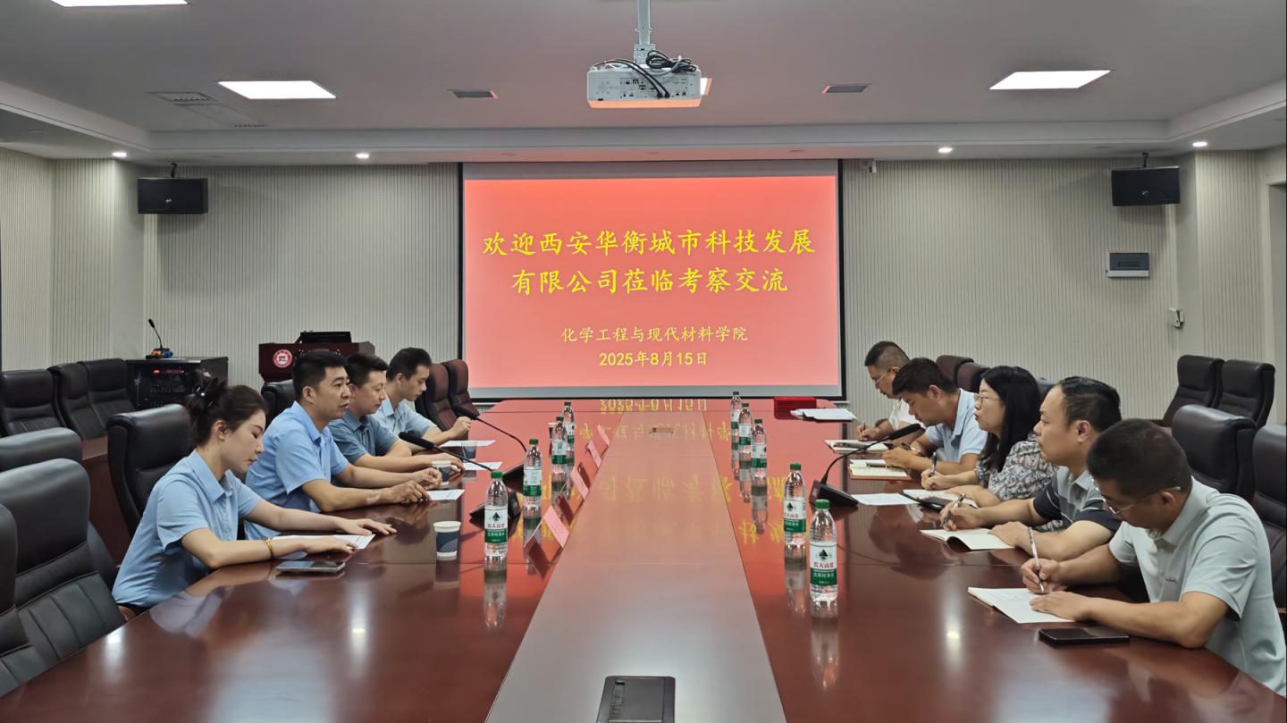 8月15日,西安華衡城市科技發(fā)展有限公司總經(jīng)理劉震霖一行來化材學(xué)院考察交流,就深化校企合作、推動(dòng)產(chǎn)學(xué)研融合開展座談,化材學(xué)院院長(zhǎng)曹寶月及教師代表10余人參會(huì)。