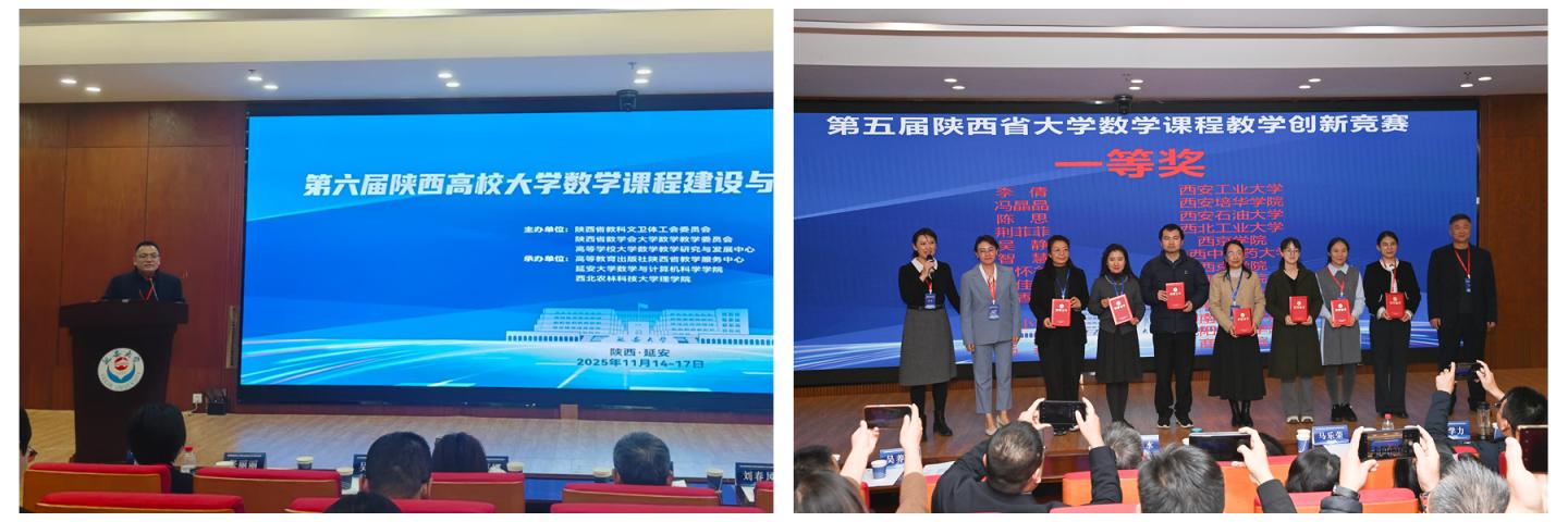 11月14日至16日,第六屆陜西高校大學數(shù)學課程建設與教學改革交流會在延安大學召開。數(shù)學與計算機應用學院副院長程國、應用數(shù)學系教師蔡昭、盧晶、楊燕一行4人參加了此次會議。會議分兩個階段進行,程國主持大會第二階段報告。會議期間舉行了第五屆陜西省大學數(shù)學課程教學創(chuàng)新競賽頒獎儀式,我校教師楊燕榮獲一等獎。在會議討論期間,我校教師就數(shù)學學科建設、課程思政、虛擬教研室建設、一流課程建設等方面和與會專家進行了深入交流和探討。