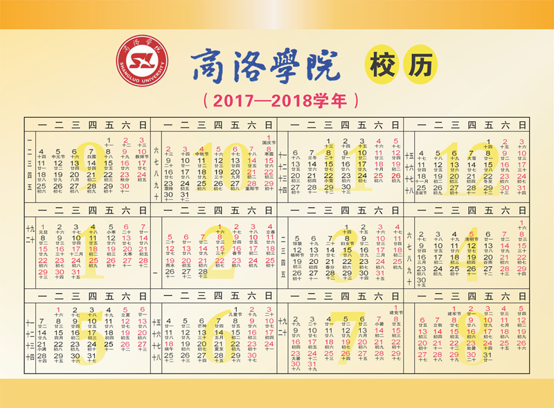 商洛學(xué)院校歷(2017—2018學(xué)年)